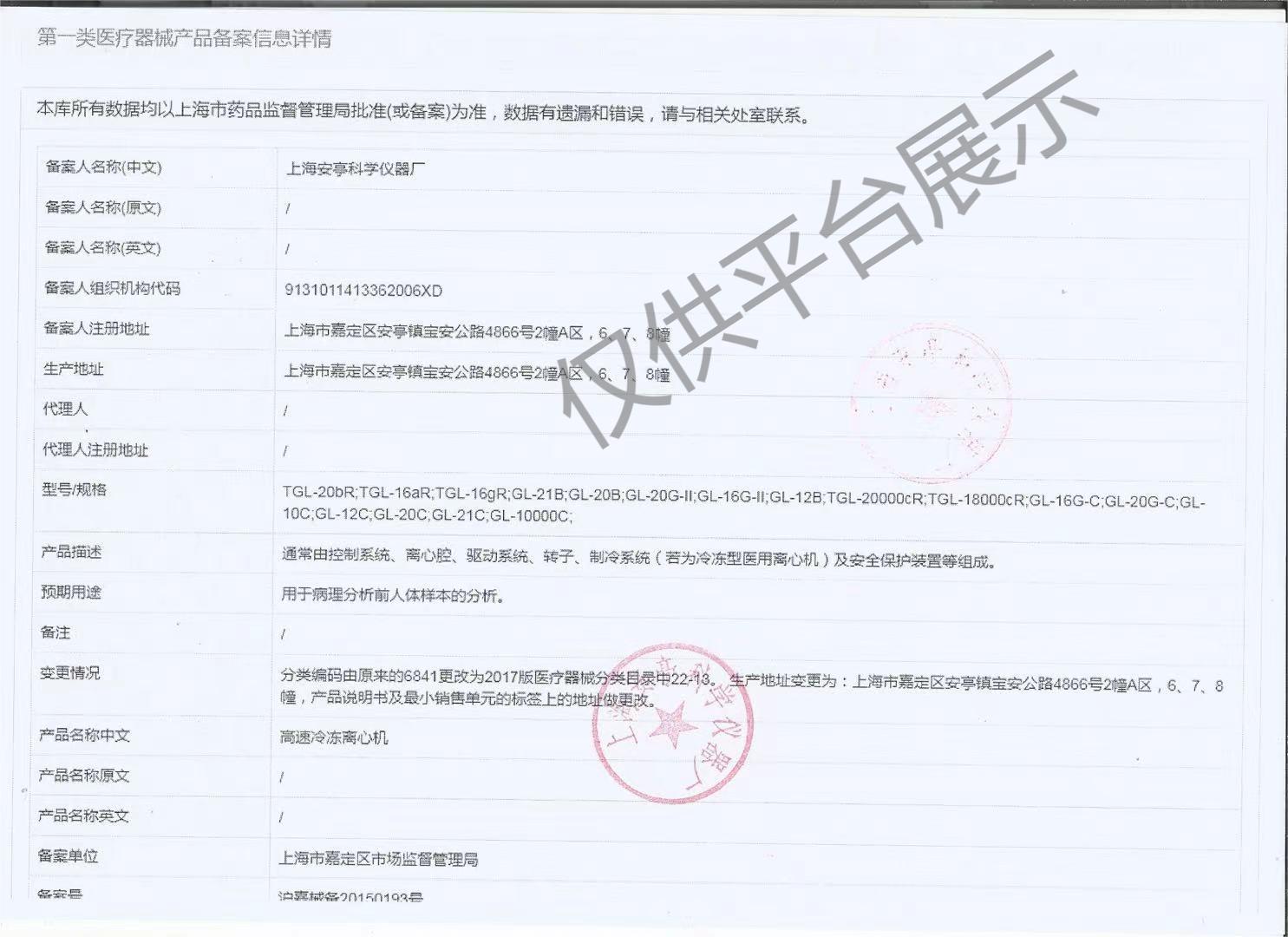 | 產(chǎn)品名稱 : | 上海安亭/飛鴿牌高速臺式冷凍離心機TGL-16AR |