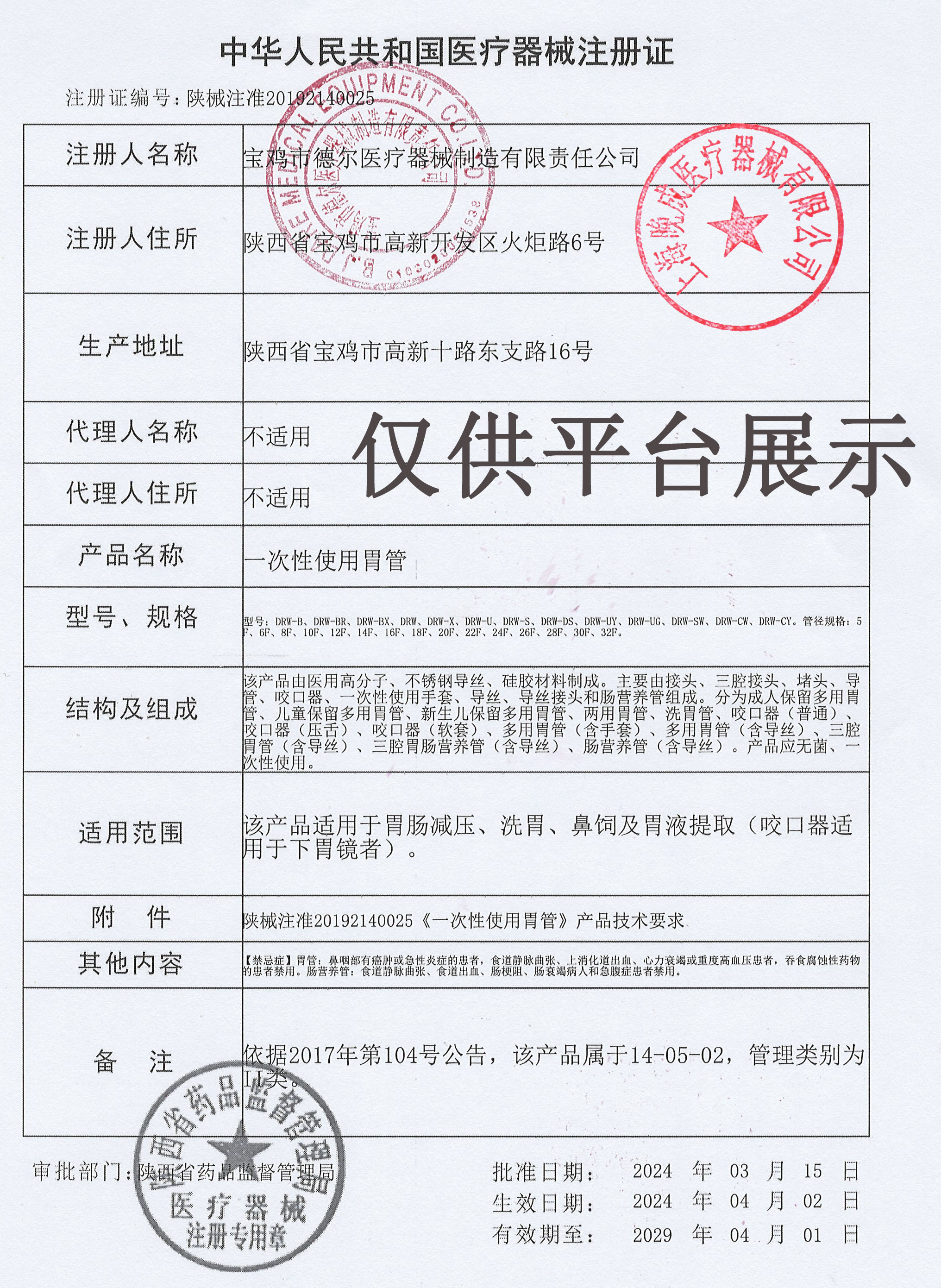 | 產(chǎn)品名稱 : | 陜西寶雞德爾DRW-X型一次性使用胃管 |