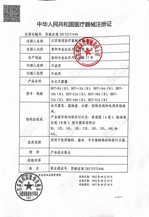 產(chǎn)品名稱 : 登冠臺(tái)式滅菌器DGT-23B型