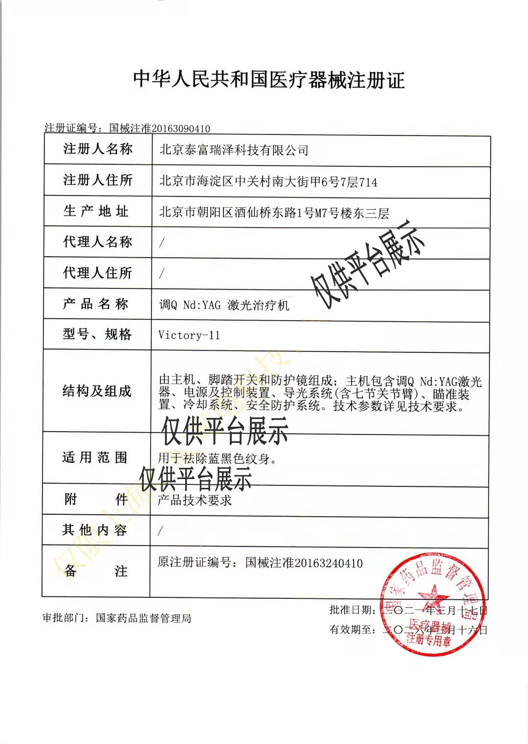 | 產(chǎn)品名稱 : | 泰富 調(diào)Q Nd:YAG激光治療機 Victory-11型 |